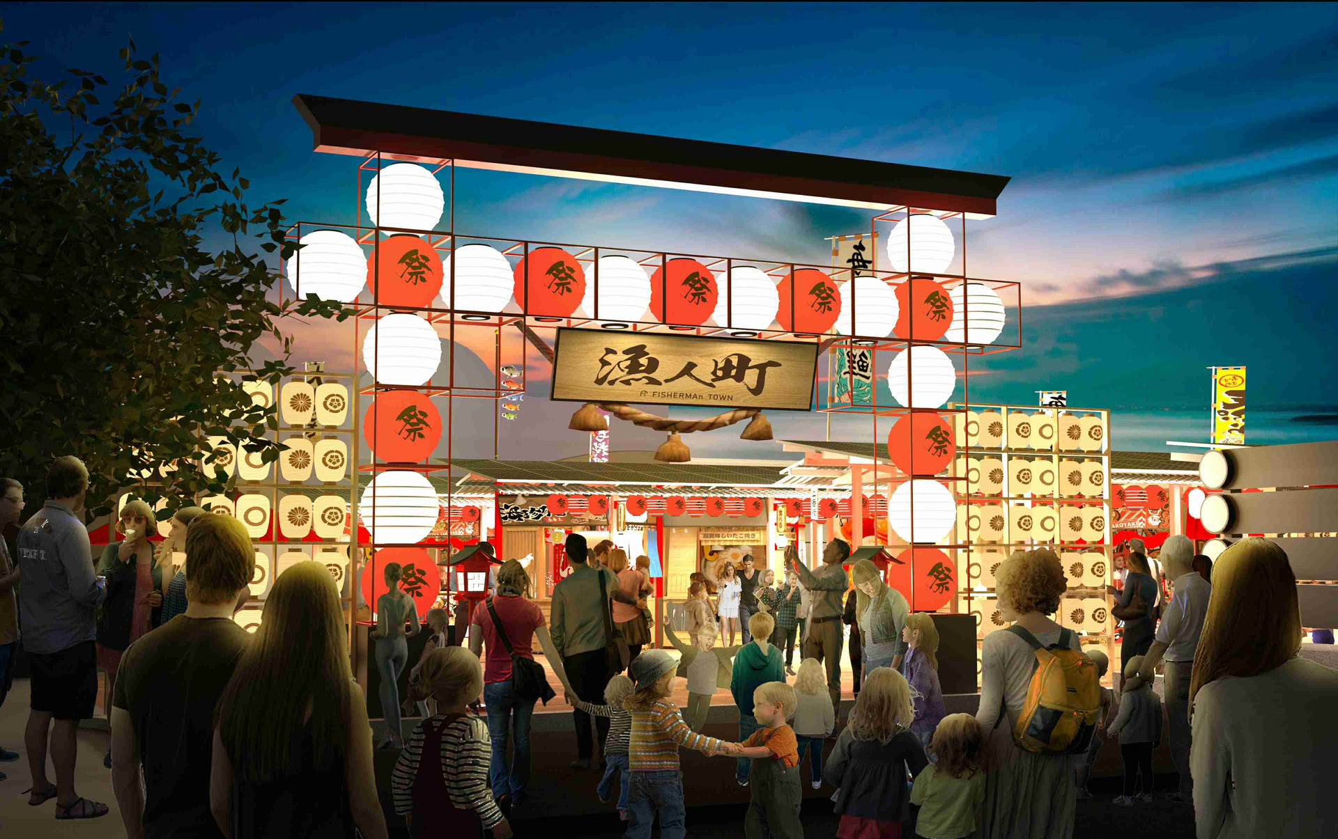 在這濃濃的日式氛圍下,你可以品嚐到日式和臺灣絕妙的文化融合,還有不同主題的攤位品牌,漁饗食、漁生活、漁親子等!在創新的攤位模式下逛街,搭配濃濃的日本視覺,翻轉你對夜市的印象,為你帶來前所未有的文化饗宴。